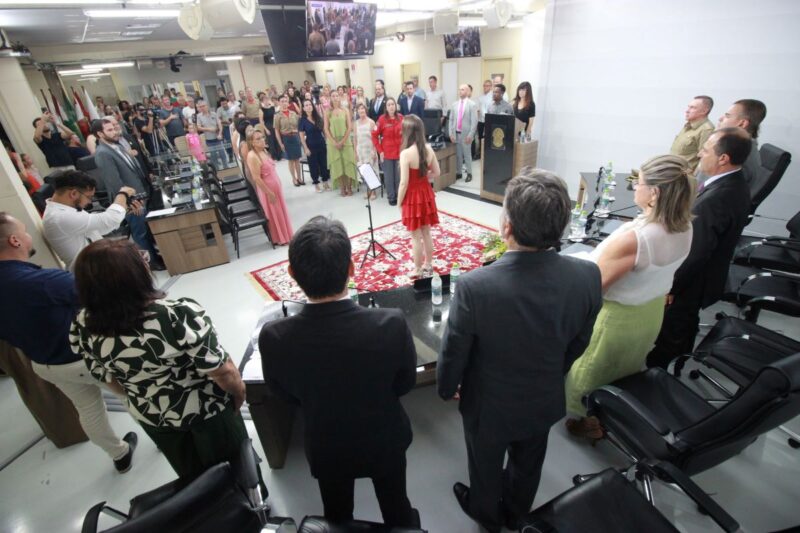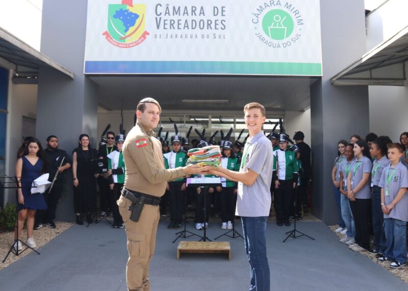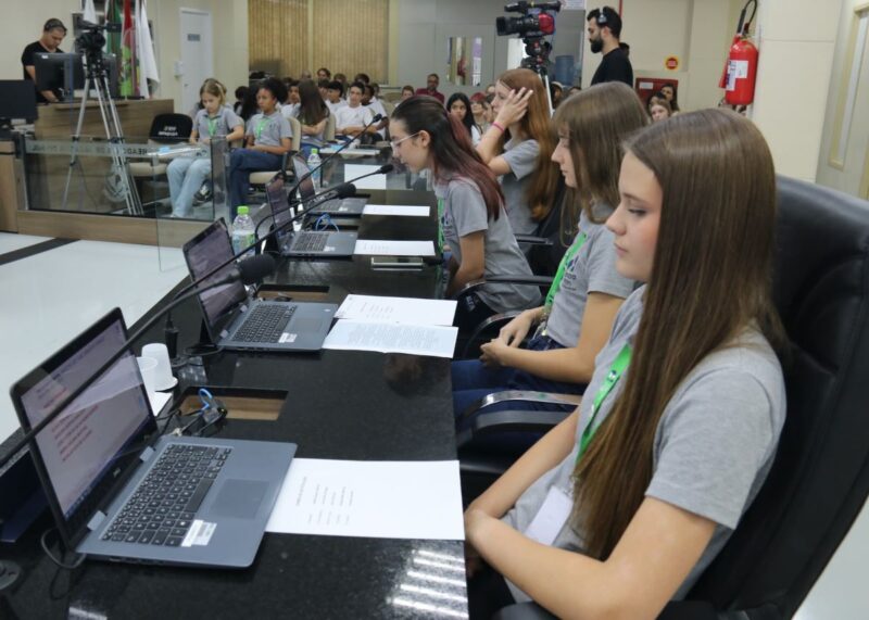 Durante a tarde dessa quarta (25), estudantes, parlamentares, autoridades e vereadores mirins estiveram presentes na sede da Câmara Municipal de Jaraguá do Sul para a