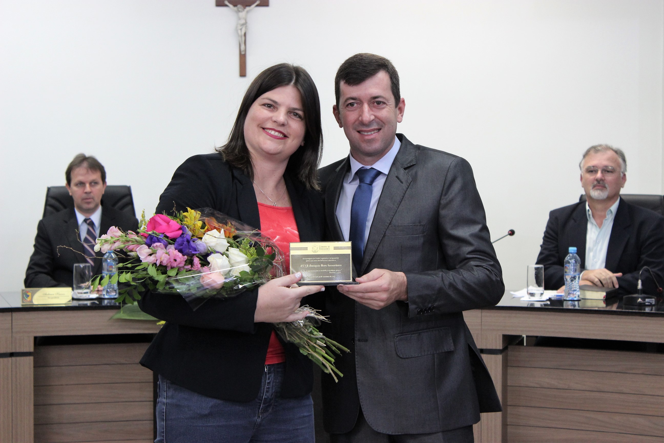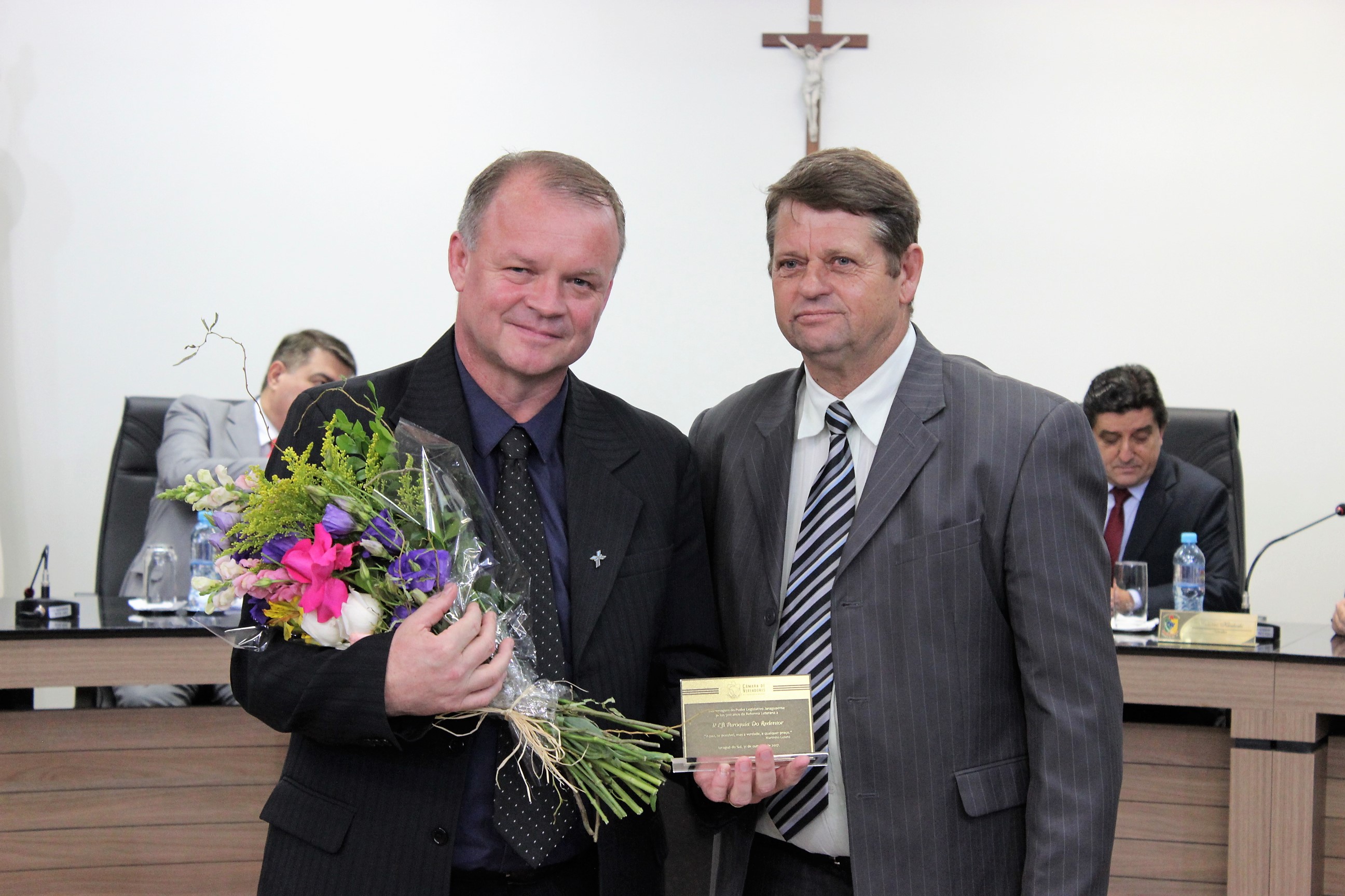 A Câmara de Vereadores de Jaraguá do Sul homenageou, nesta terça-feira (31), as comunidades luteranas do município em celebração aos 500 anos da Reforma Protestante. Na solenidade foram lembrados 12 representantes de entidades luteranas jaraguaenses. Os autores do requerimento para realização da homenagem foram os vereadores Arlindo Rincos e Jaime Negherbom.