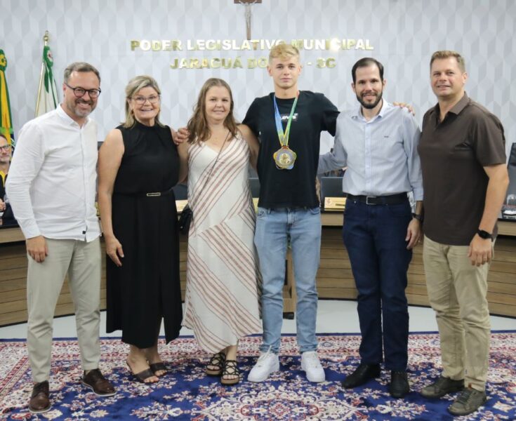 Na noite desta terça-feira (16), a Câmara Municipal de Jaraguá do Sul realizou uma sessão solene marcada por emoção, reconhecimento e celebração do esporte. Atendendo ao Requerimento nº 51/2025, o Legislativo prestou homenagens ao Jaraguá Futsal, pelos 33 anos de trajetória e conquistas, e ao jaraguaense Filipe Luís, referência nacional e internacional no futebol.