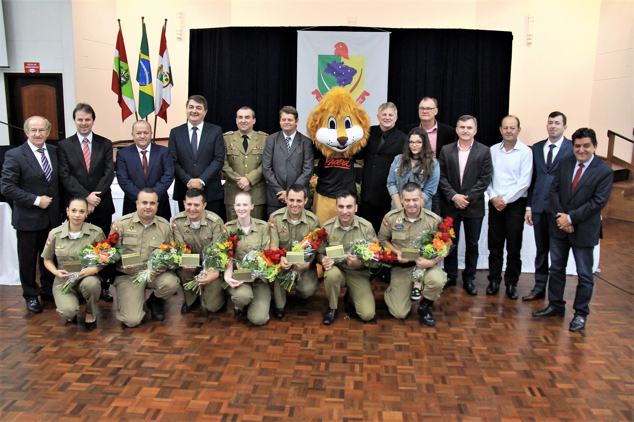 Na oportunidade foram homenageados seis instrutores, que estão na ativa, o coordenador do Programa em Jaraguá do Sul, Major Aires Volnei Pilonetto e o Comandante do 14º Batalhão, Tenente Coronel Gildo Martins de Andrade Filho.