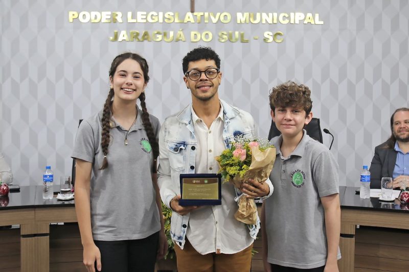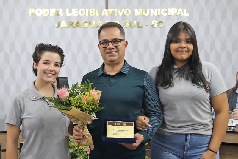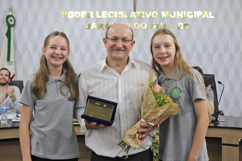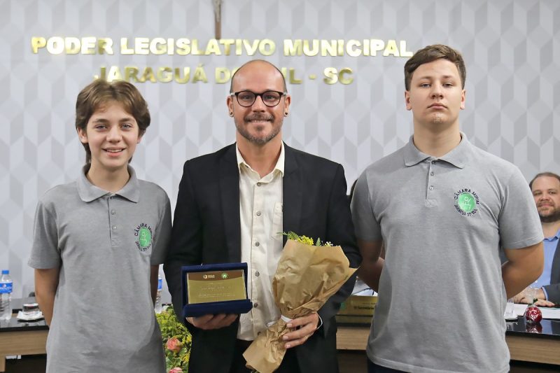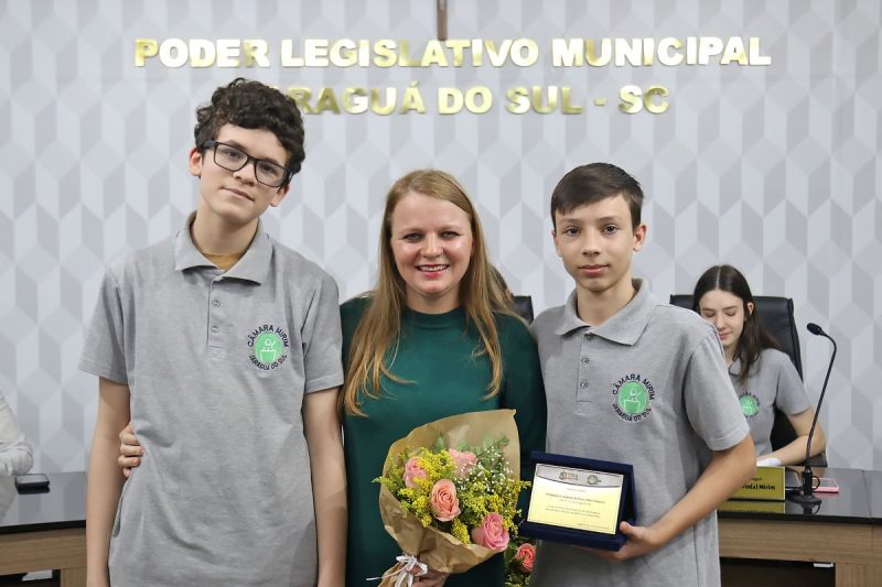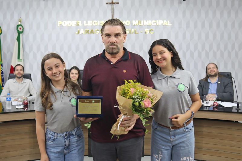 Em um gesto espontâneo, os mirins também estenderam a homenagem a Joel Luís Corrêa, coordenador de Programas e Ações Institucionais que acompanha os jovens parlamentares ao longo do ano. A mirim Isabelly da Silveira (E.M.E.B. Marcos Emilio Verbinnen) comentou o trabalho de Joel na tribuna. “Aqui, na Câmara Mirim, o senhor continua fazendo o que fez de melhor. Transformar vidas com paciência, carinho, firmeza”, constatou.
