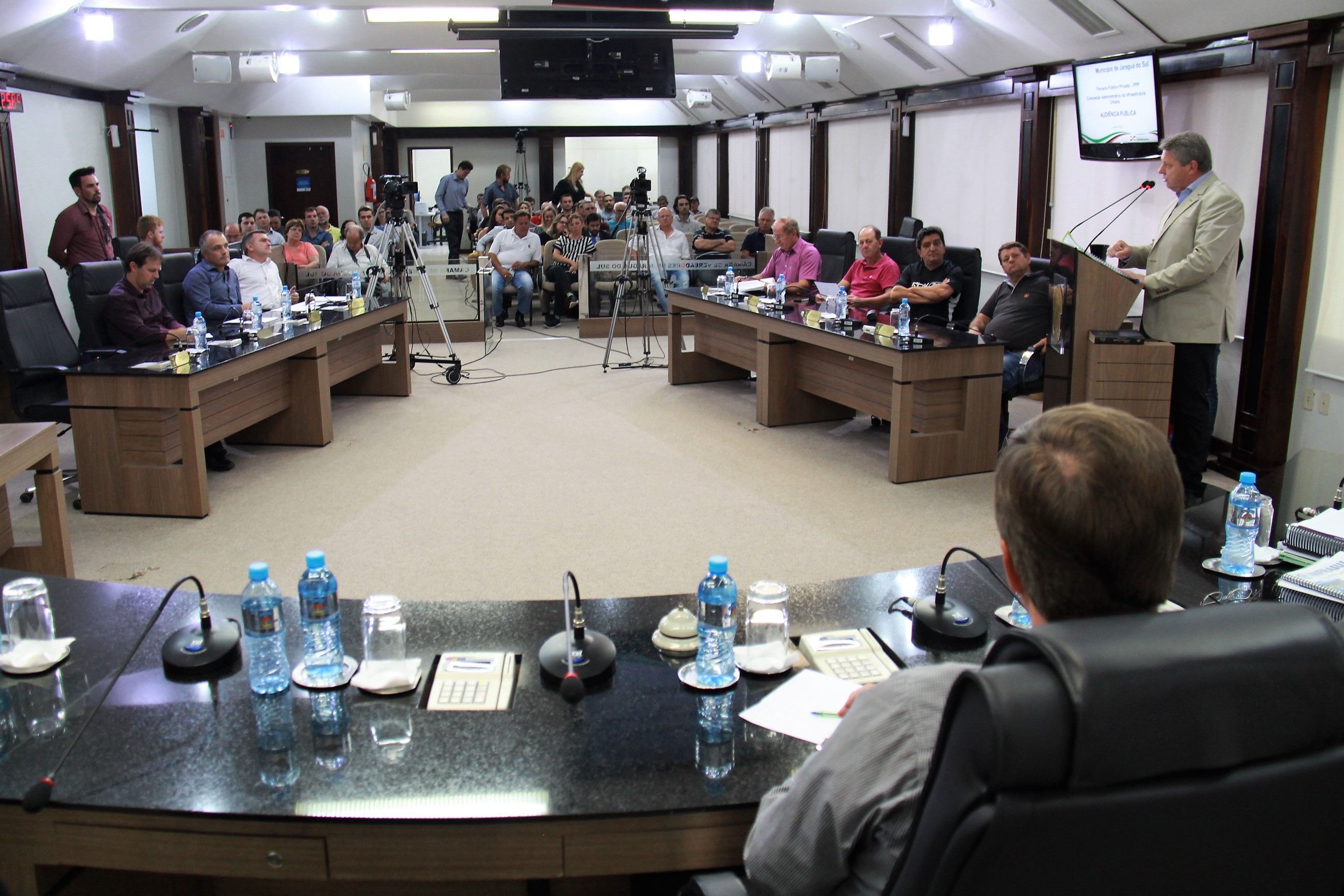 A Câmara de Vereadores de Jaraguá do Sul sediou nesta segunda-feira (29) uma audiência pública sobre as Parcerias Público-Privadas. A discussão promovida pela Prefeitura Municipal, teve como objetivo esclarecer dúvidas sobre a execução das PPPs, tendo em vista que o Projeto para autorização e regulamentação das mesmas, foi aprovado pela Câmara de Vereadores em meados de novembro de 2017.