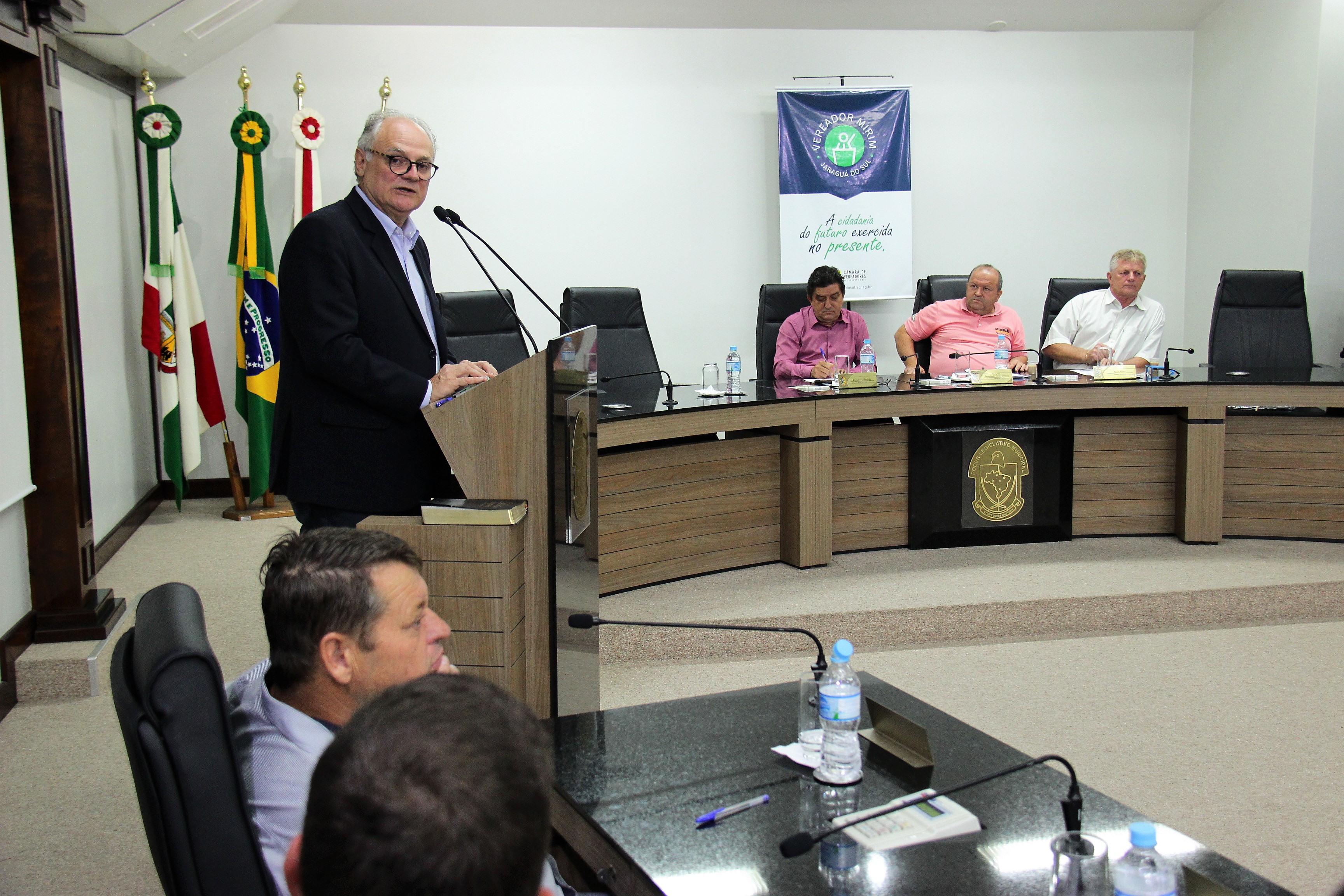 O deputado estadual Vicente Caropreso (PSDB) apresentou, na sessão ordinária desta quinta-feira (14) na Câmara de Vereadores de Jaraguá do Sul, os trabalhos do seu mandato na Assembleia Legislativa de Santa Catarina. O requerimento para a apresentação foi do vereador Isair Moser (PSDB). Caropreso destacou que, durante os últimos quatro anos, foram protocoladas por ele 171 proposições na Alesc, entre projetos de lei, moções, projetos de resolução e outras matérias.