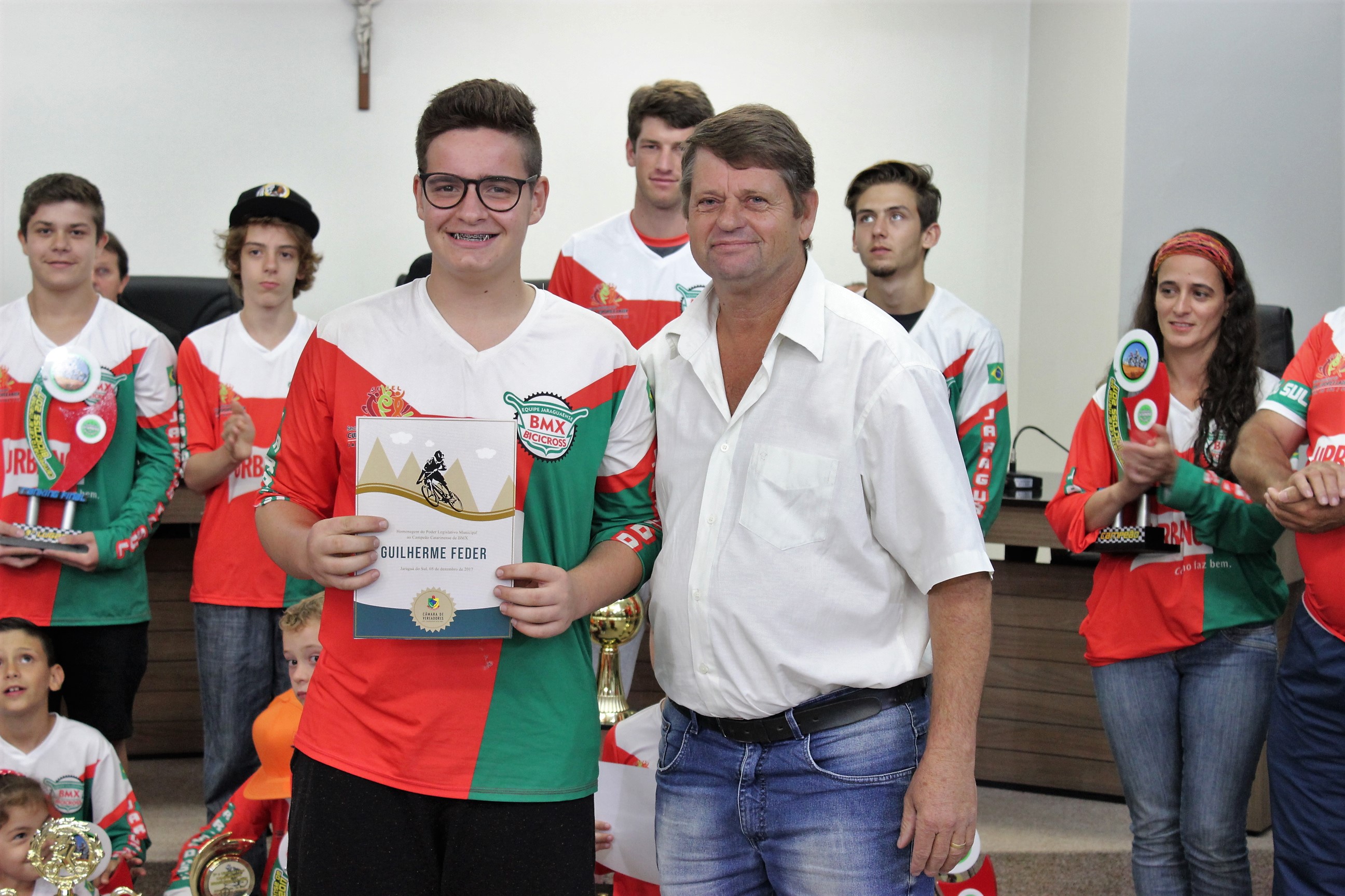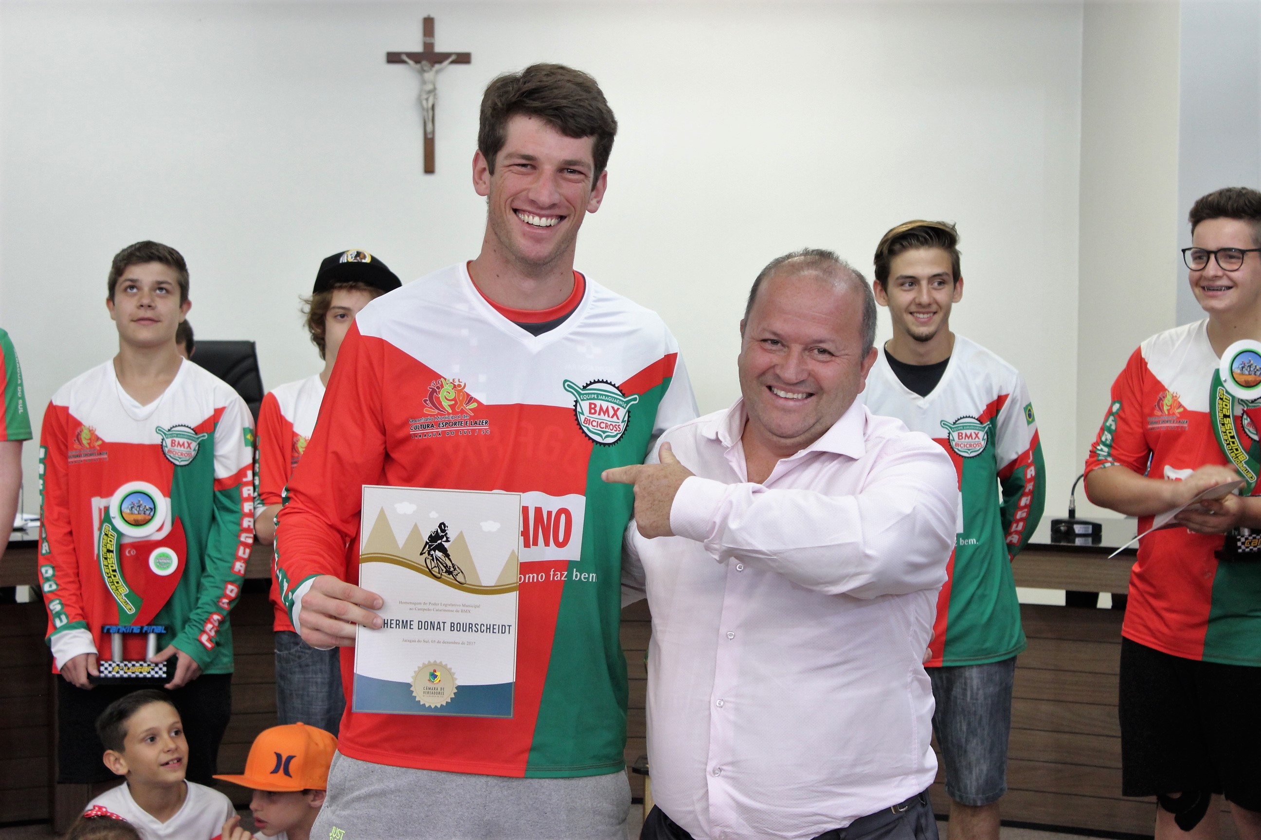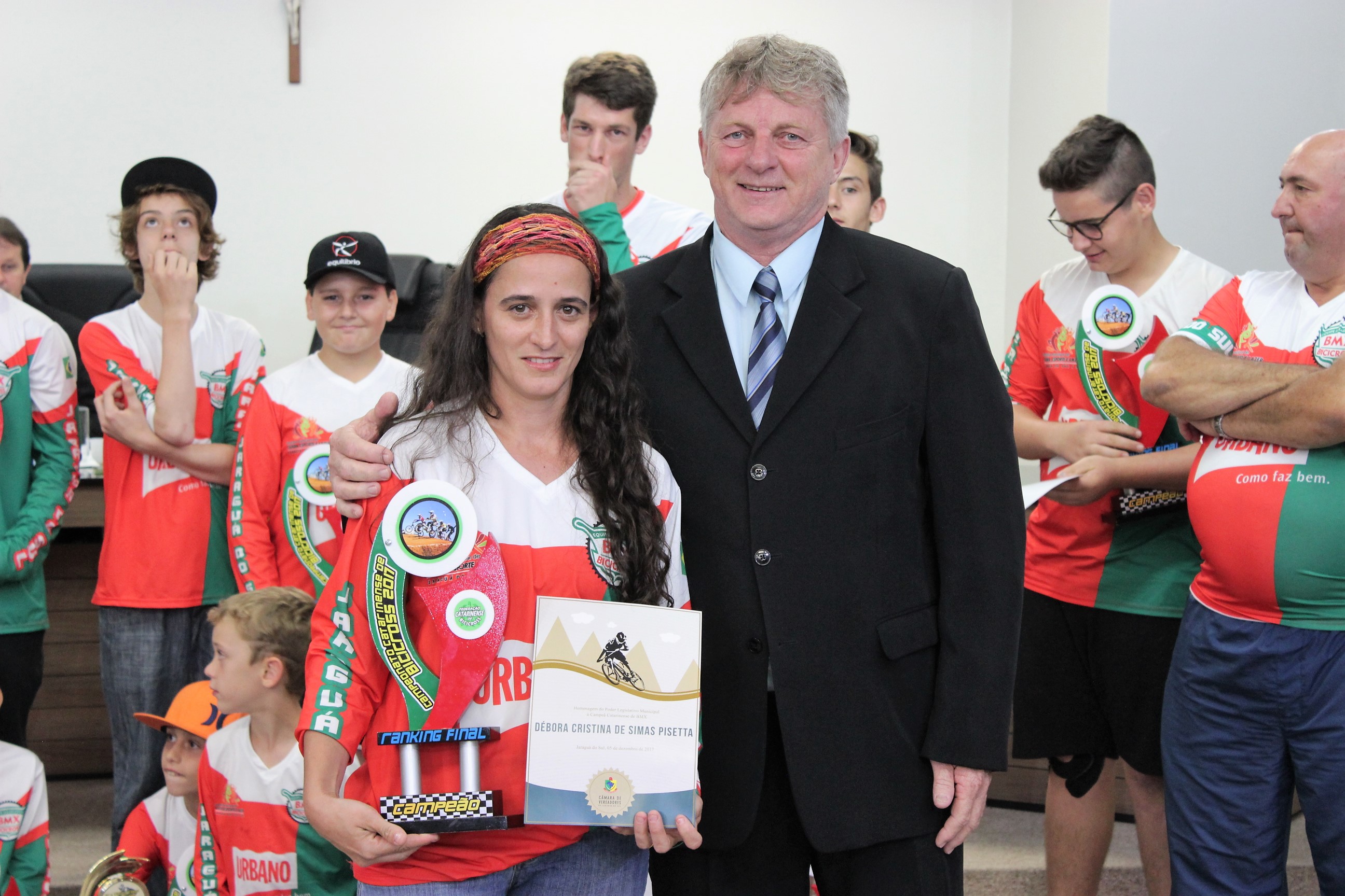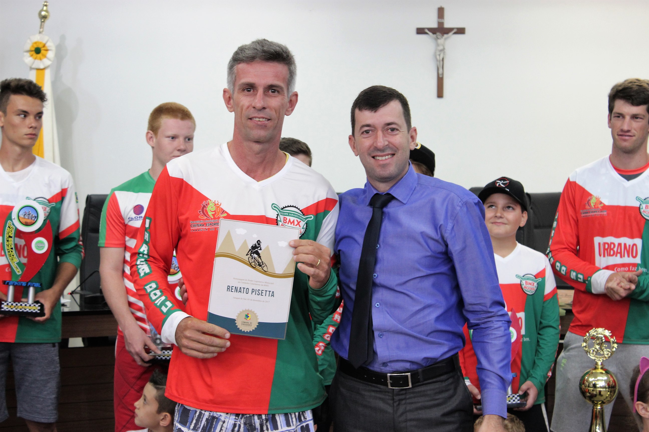 O presidente do Legislativo jaraguaense, Pedro Garcia, homenageou a Sociedade Corintias Sport Club – Equipe Jaraguaense de Bicicross pele trabalho realizado por quase quatro décadas no município. A equipe completa 37 anos de atividades no próximo dia 22 de dezembro.