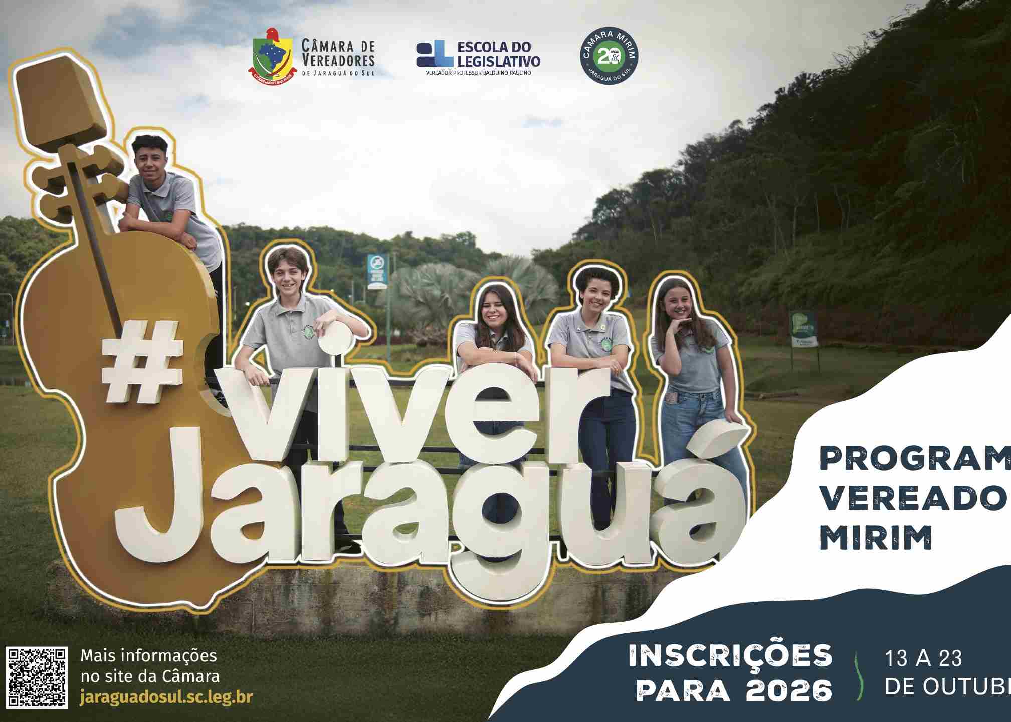 As inscrições iniciam hoje (13) e seguem até a próxima quinta, 23, pelo endereço Inscrições – Programa Vereador Mirim – Câmara de Vereadores de Jaraguá do Sul.