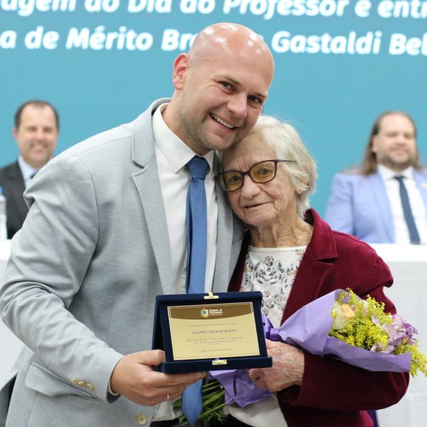 Homenageada pelo vereador Jonathan Reinke (União), a professora Lora Maria Scheuer Bockor representa a história viva da educação jaraguaense. Aos 91 anos, dedicou quase três décadas ao magistério, lecionando com amor, disciplina e profundo senso de missão, formando gerações com seu exemplo e vocação.