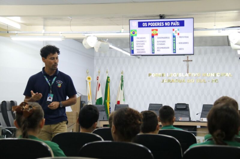 A Câmara Municipal de Jaraguá do Sul tem intensificado ações institucionais voltadas ao letramento político e à aproximação da população com o Poder Legislativo. Entre as iniciativas, o programa Alunos no Legislativo tem se destacado ao levar conhecimento político de forma acessível e prática a estudantes dos anos iniciais do Ensino Fundamental.