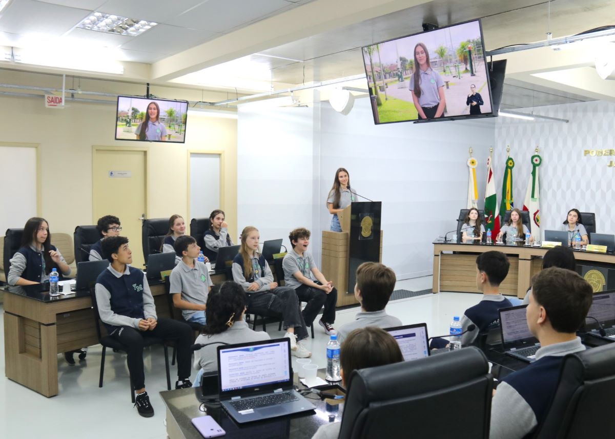 A emoção da despedida marcou a última sessão da Câmara Mirim de Jaraguá do Sul durante a manhã dessa quarta-feira (26). No Plenário Victor Bauer, os jovens parlamentares expressaram a gratidão por participarem do programa, pelas amizades feitas ao longo do ano e pelas experiências que ficarão marcadas na memória.