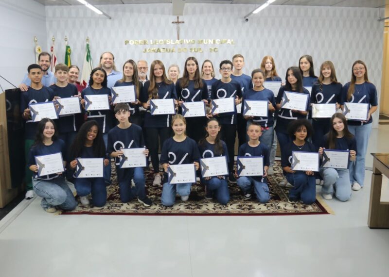 No dia 10 de dezembro, a Câmara Municipal de Jaraguá do Sul realizou a diplomação dos vereadores mirins eleitos para a 16ª Legislatura da Câmara Mirim, que será exercida em 2026. A cerimônia reuniu autoridades municipais, representantes das escolas e familiares dos estudantes.
