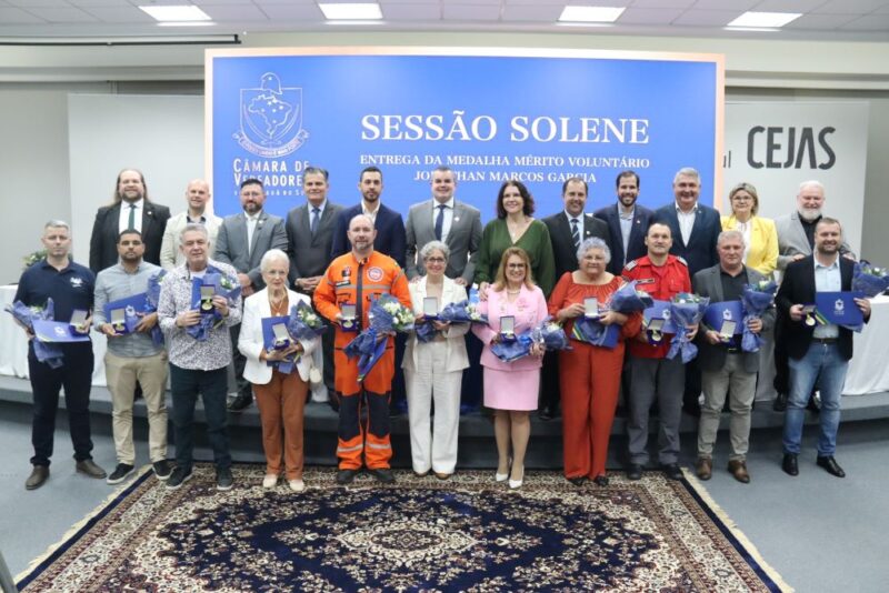 Em 28 de agosto, a Câmara realizou a entrega bienal da Medalha de Mérito Voluntário – Jonathan Marcos Garcia. A honraria, que visa homenagear cidadãos, empresas e entidades por trabalhos voluntários em benefício da comunidade, reconheceu 11 destaques, incluindo Neilor Vincenzi (Bombeiros Voluntários), a Associação UP Down e a Rede Feminina de Combate ao Câncer. O evento reafirmou o papel indispensável das associações e do altruísmo na construção da cidade.