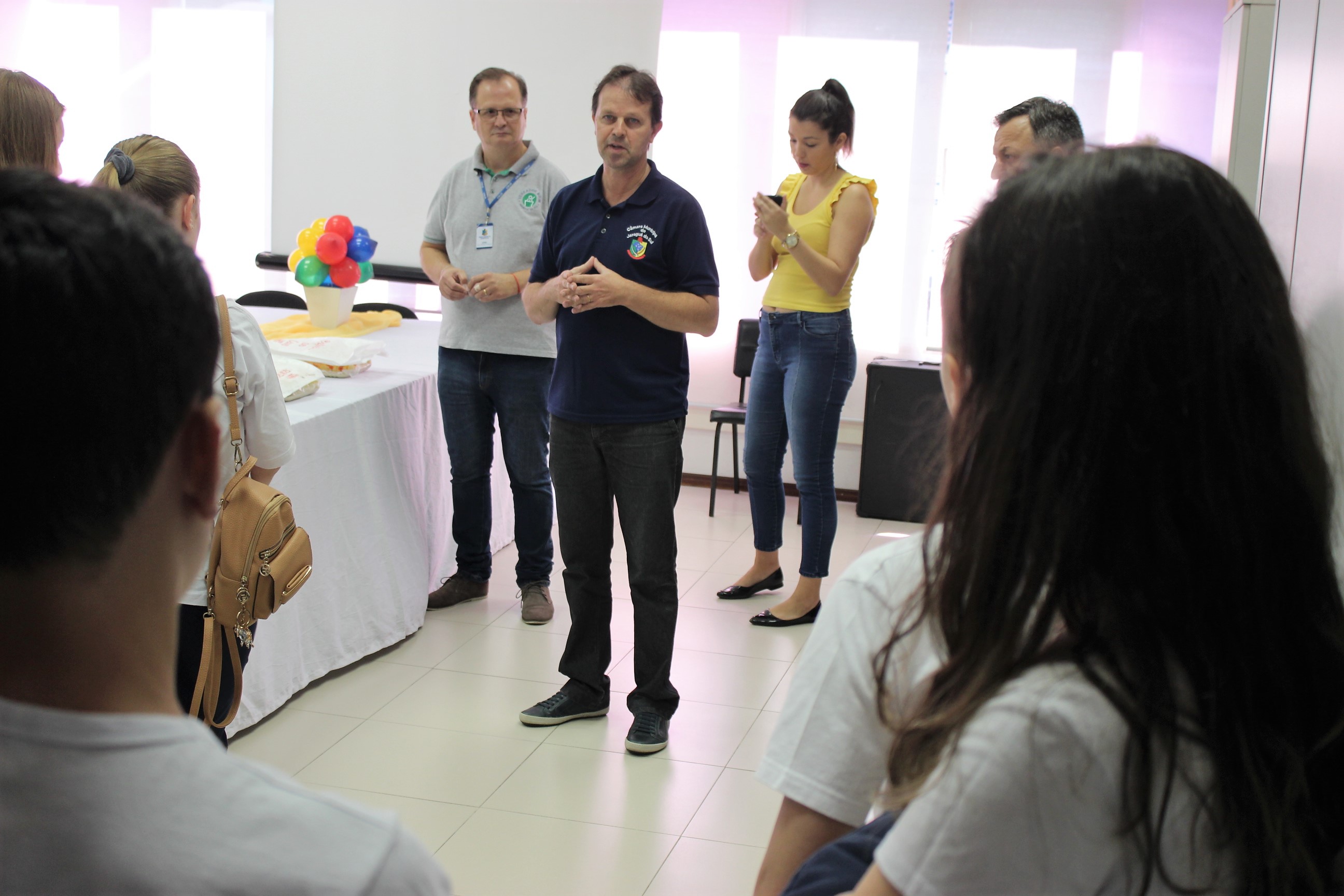 Os vereadores mirins de Jaraguá do Sul começaram as atividades do programa na manhã desta quarta-feira (21). Os estudantes foram recepcionados pelo presidente da casa, Anderson Kassner, e conheceram os setores do Legislativo. Logo após, no plenário da Câmara, os parlamentares mirins participaram de uma dinâmica de apresentação e assistiram a uma palestra do coordenador do programa, Joel Corrêa, que abordou a atuação dos três poderes da República – Legislativo, Executivo e Judiciário – e o funcionamento da Câmara de Vereadores, além de outros temas relacionados à cidadania. Ao todo serão 37 encontros ao longo deste ano, sempre às quartas-feiras no período da manhã, a fim de contemplar, nesta edição, as turmas que frequentam o período da tarde nas escolas.